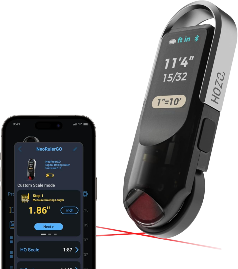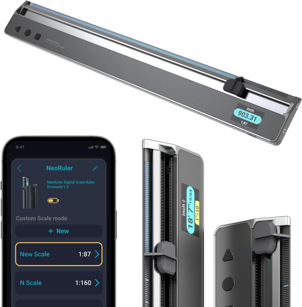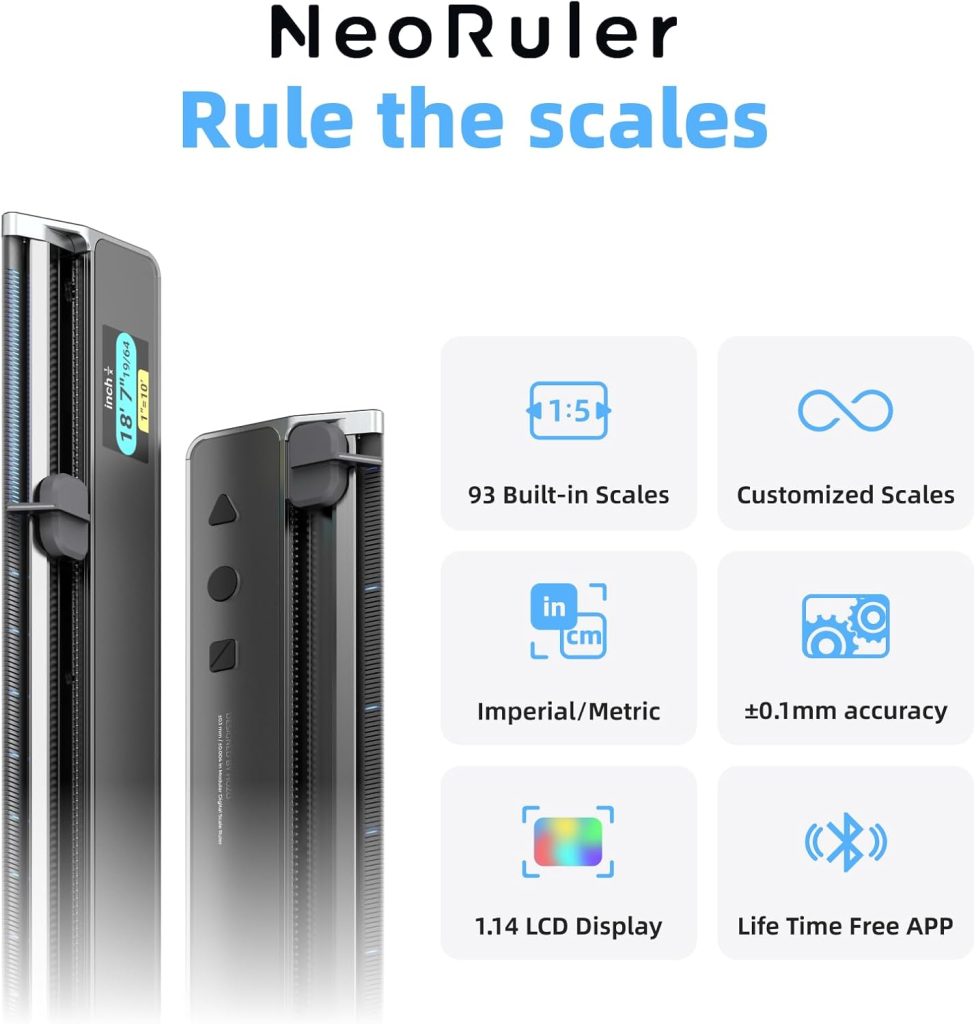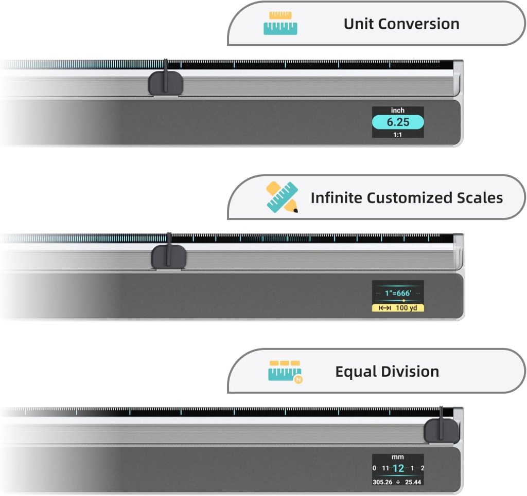 Digital Scale Ruler, 12 inch Smart Scale Ruler with Infinite Customized Scales and ±0.004 inch Accuracy, 93 Built-in US Imperial, Metric Scales, Architectural and Engineering